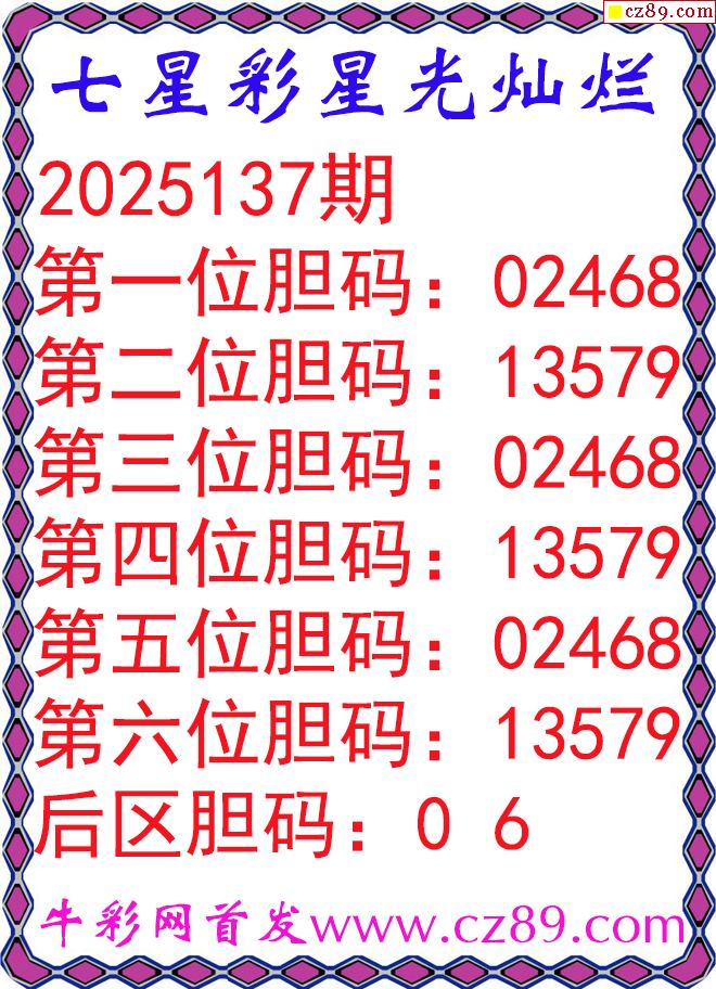 七星彩2025137期星光灿烂五码图谜